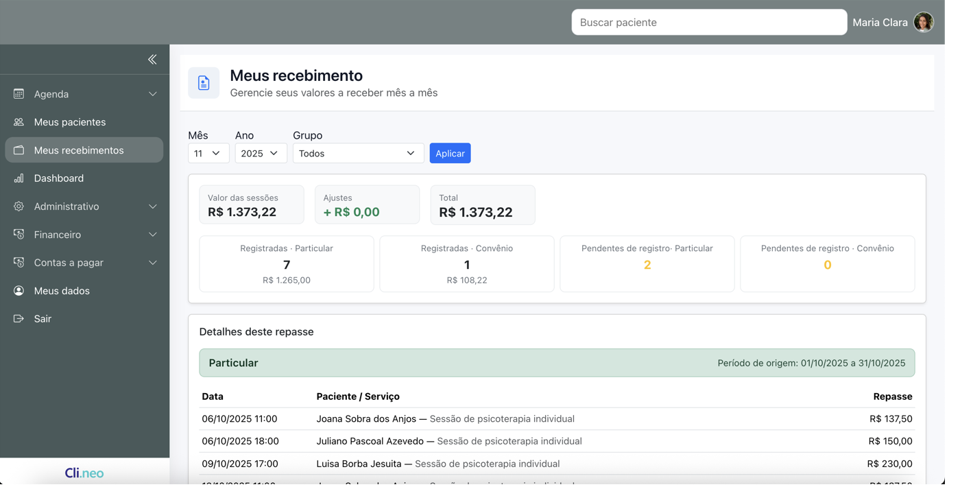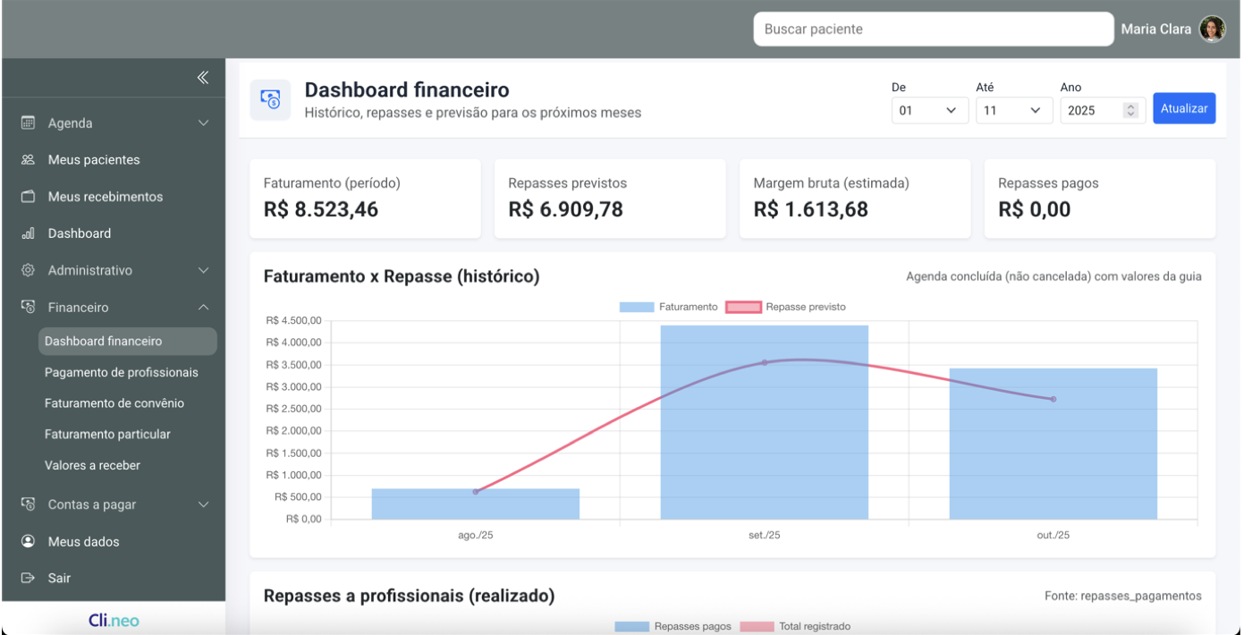 Automatize processos, otimize repasses e centralize tudo em um único lugar. O Clineo foi feito para a sua clínica — do agendamento ao faturamento.