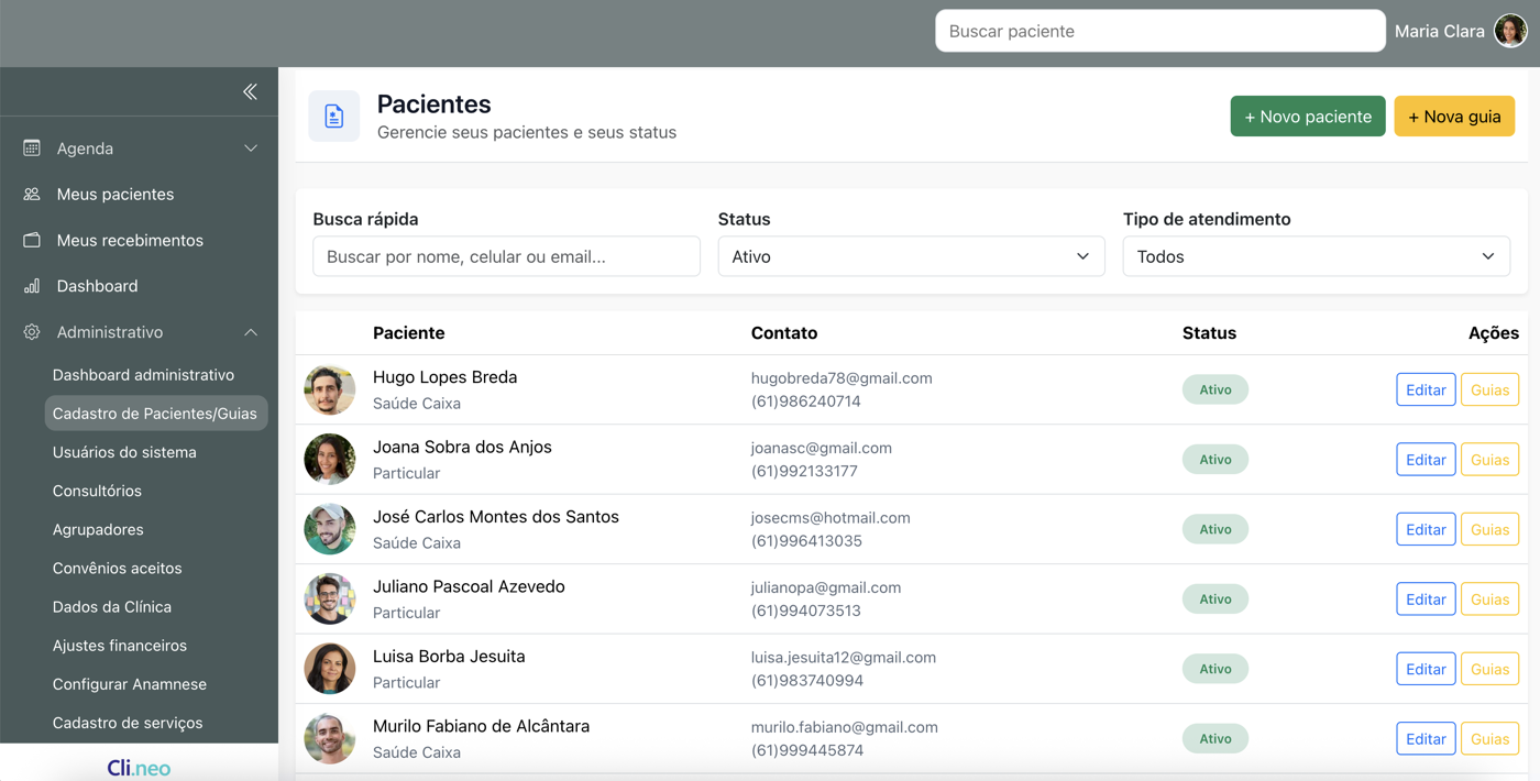 Automatize processos, otimize repasses e centralize tudo em um único lugar. O Clineo foi feito para a sua clínica — do agendamento ao faturamento.